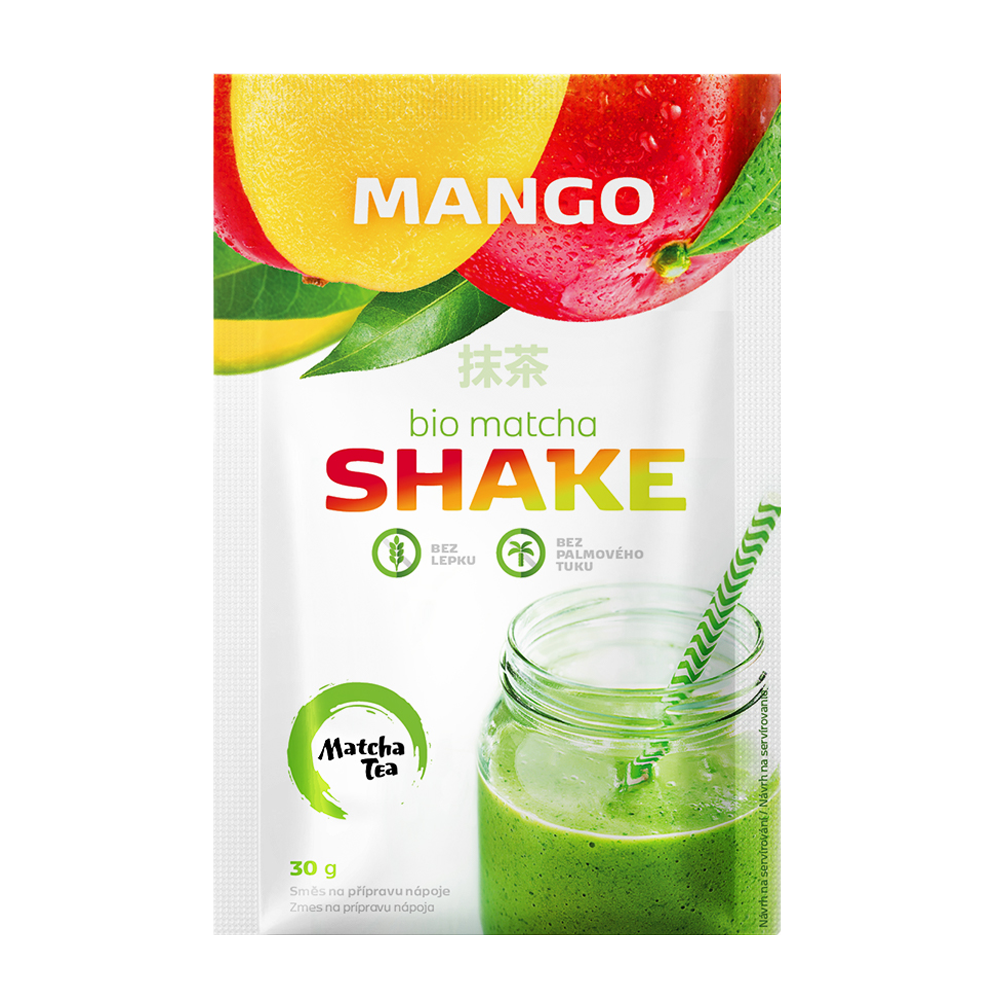 BIO Matcha shake mango, který jednoduše rozmícháte ve vodě. Tento shake s příchutí manga Vás...