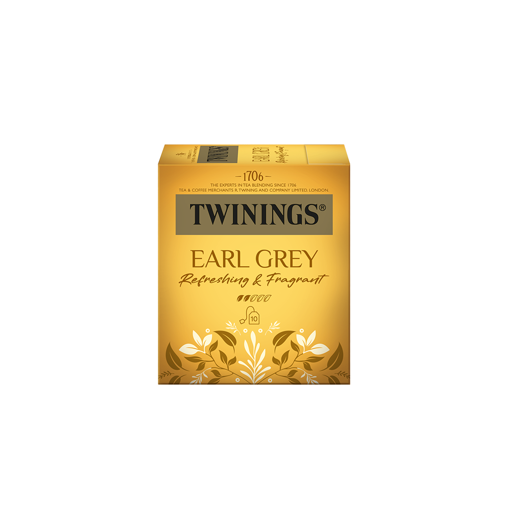 Vyzkoušejte Twinings Earl Grey 10×2 g, aromatizovaný černý čaj s bergamotem, který je ikonou mezi britskými čaji.