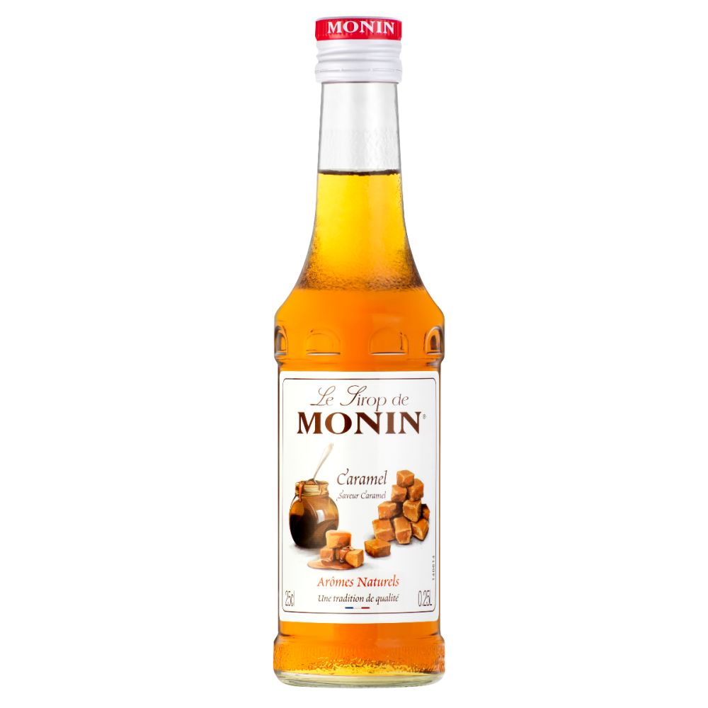 Monin karamelový sirup 250ml: Jeden z neoblíbenějších a nejuniverzálnějších příchutí sirupů Monin. Karamelový sirup lze použít k přípravě sladkých káv, čajů, čokolád nebo jednoduše k dochucení zmrzliny či ovoce.