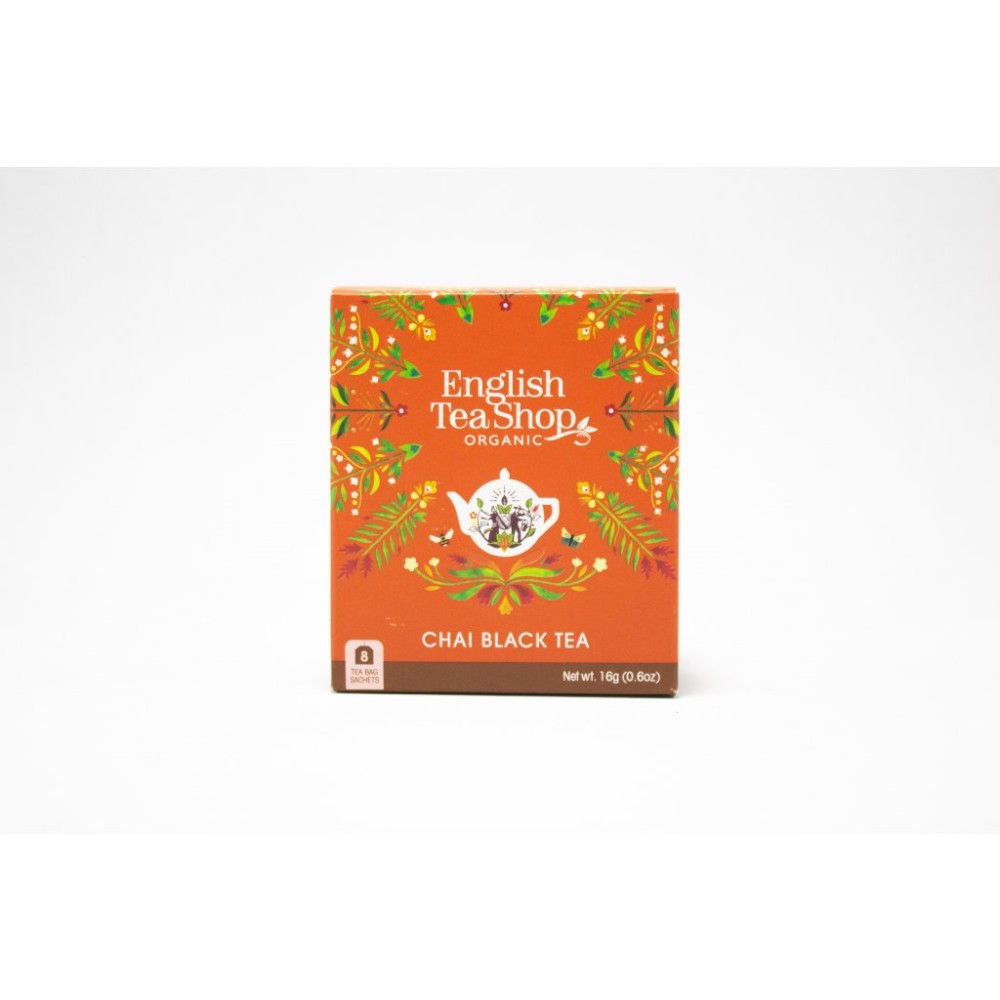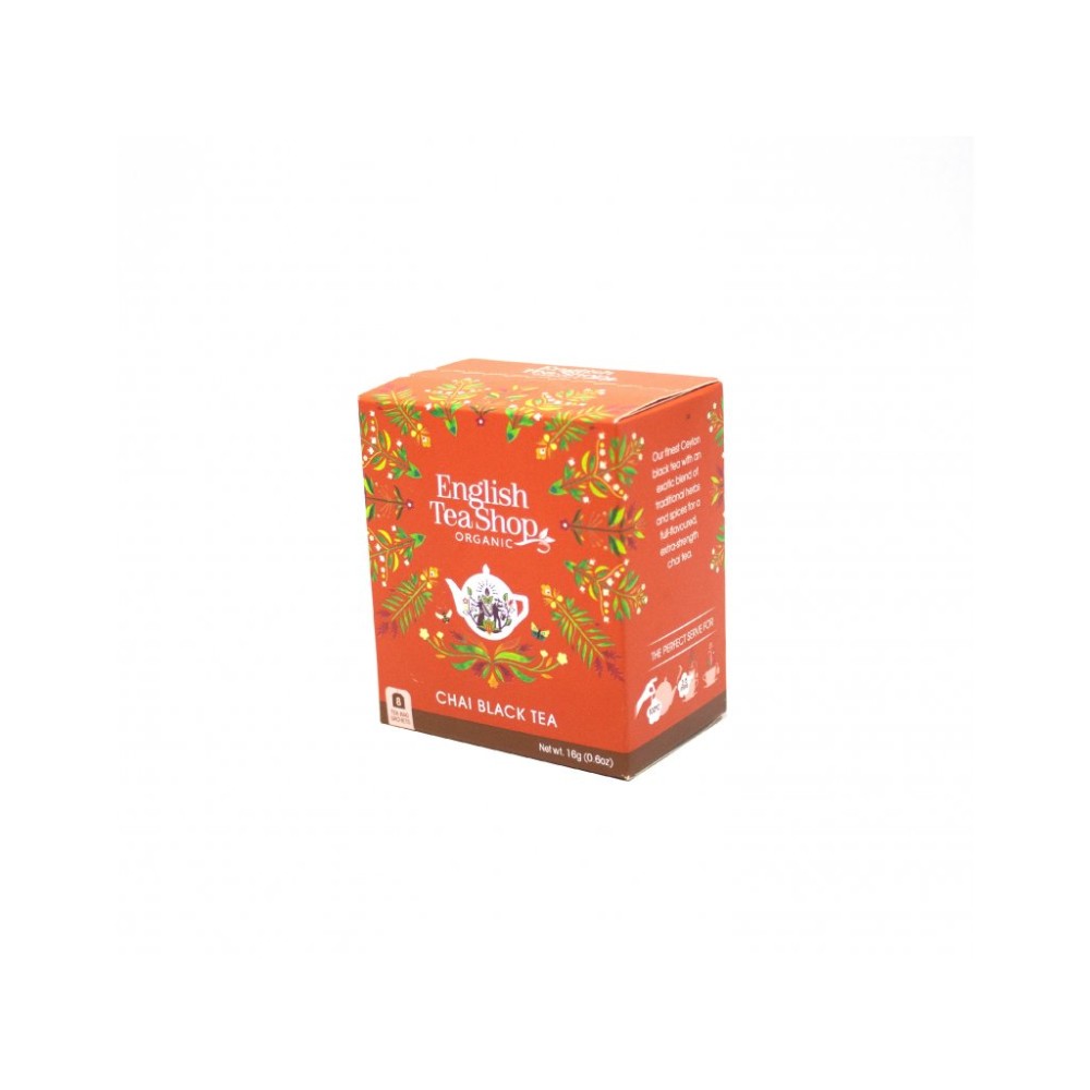 The English Tea Shop Chai černý čaj obsahuje směs bylinek, koření, pomerančová kůra a černý čaj. Tento černý čaj se tradičně podává s mlékem