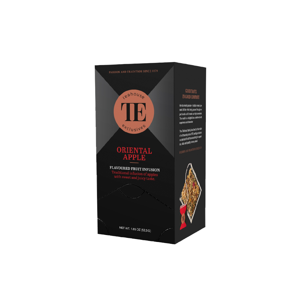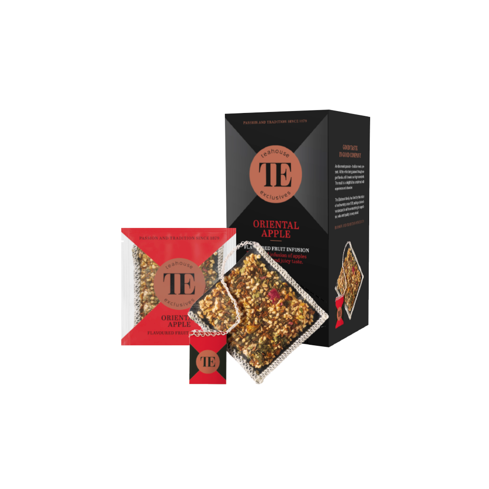 Čaj Teahouse Exclusives orientální jablko je jednotlivě hygienicky balený po sáčcích. Vhodný do gastronomie.