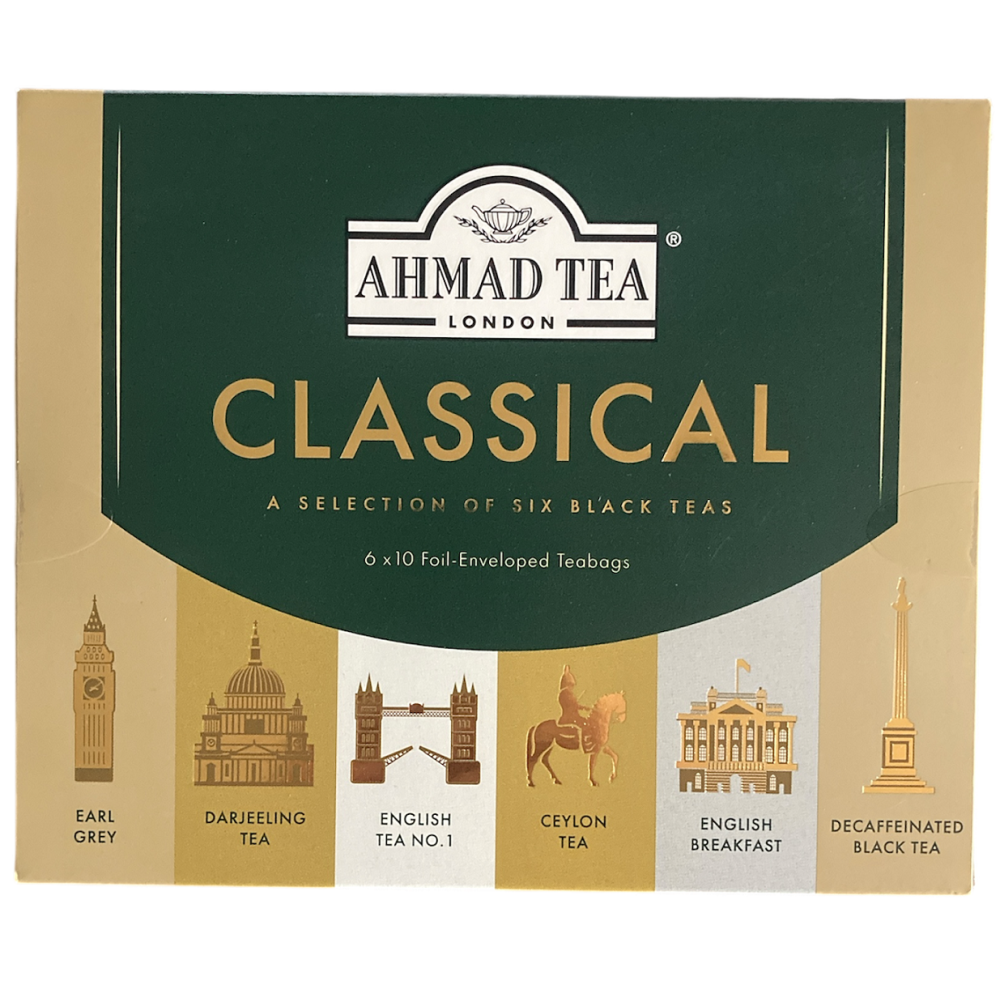 Papírová dárková krabička obsahuje 6 druhů černého čaje. Od každého druhu 10 sáčků.