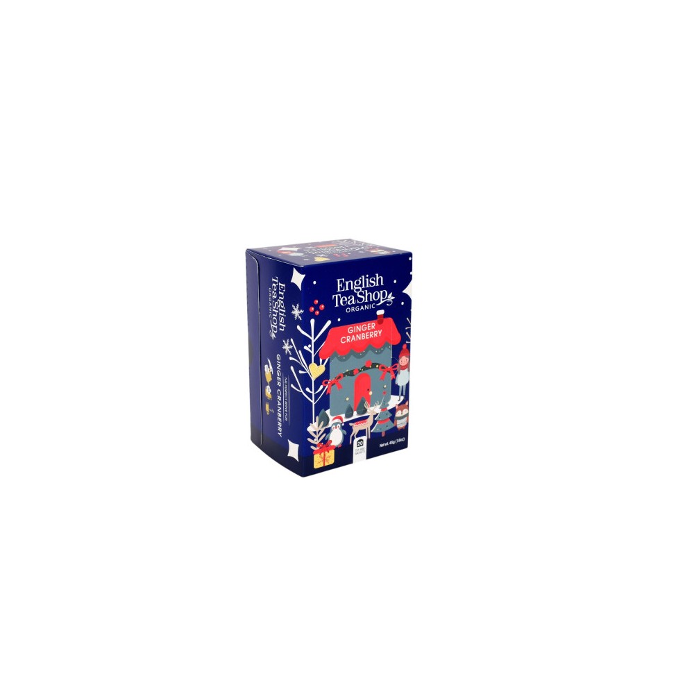Objevte Zázvor & Brusinky – 20 bio čajových sáčků od English Tea Shop, ve kterém se snoubí ostrý zázvor a šťavnaté brusinky.