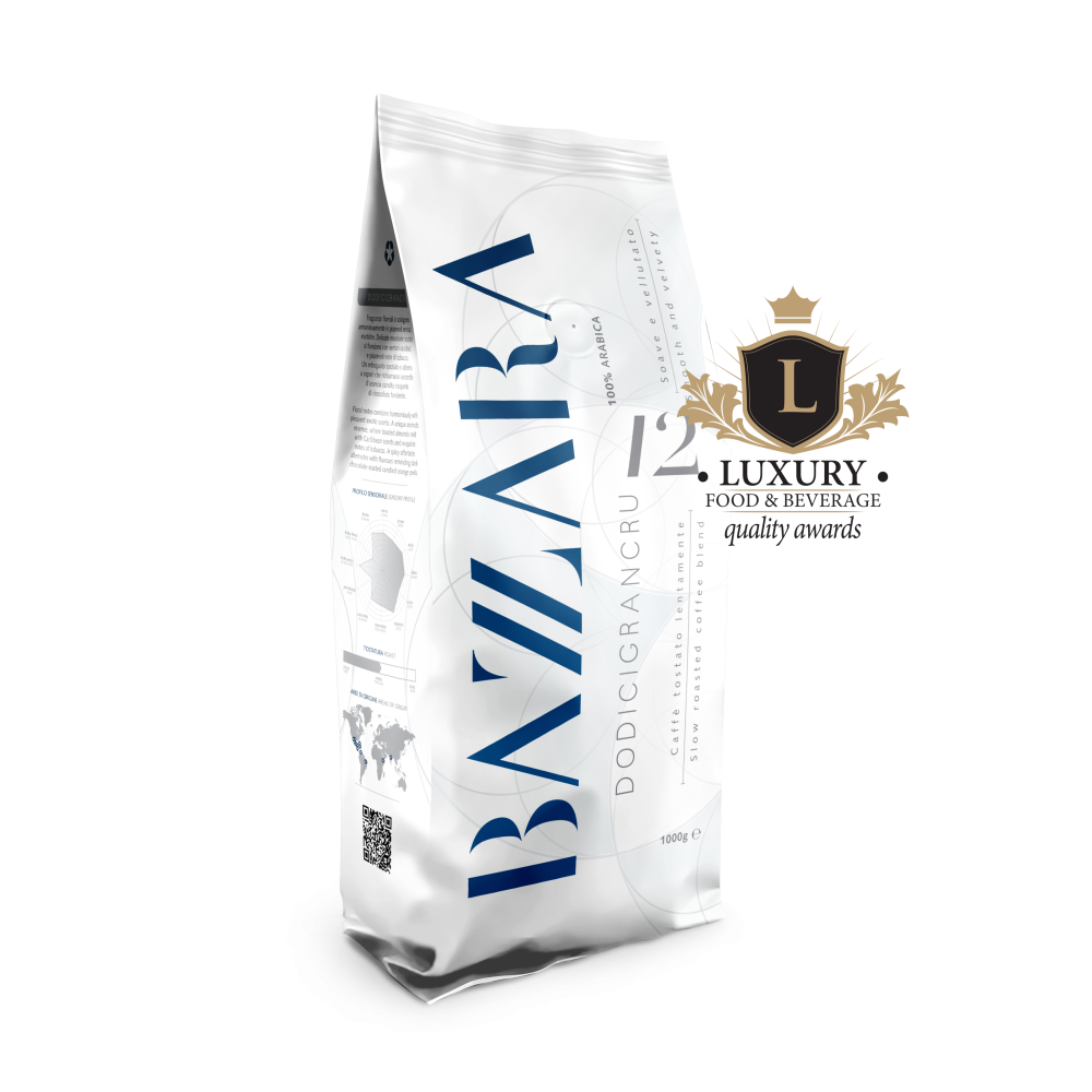 Prémiová směs Bazzara Dodicigrancru 1 kg představuje to nejlepší ze světa výběrové kávy. Tato jedinečná zrnková káva je tvořena 12 pečlivě vybranými odrůdami 100% Arabiky, které jí dodávají bohaté aroma, jemnou aciditu a sametově vyváženou chuť s tóny květin, ovoce a čokolády.